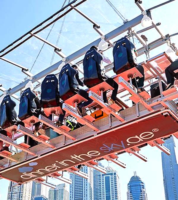 50 metres up in the sky. Suspended by a crane. Enjoy a meal.